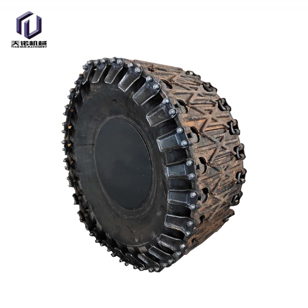 輪胎保護履帶是采用國內外先進生產(chǎn)工藝,利用優(yōu) 質 合金鋼材料,經(jīng)精 密鑄造,高強度全自動閃光對焊,編結構合理,利用特殊焊接工藝焊接而成的一種輪胎設備。保護履帶耐磨性好,抗疲勞性強,根據(jù)使用條件壽命達3000-8000小時。拆裝方便,省時省力,產(chǎn)品規(guī)格齊全,可與進口裝載機所匹配,輪胎保護履帶,采用高科技耐磨材料制成其結構新穎緊湊,性能穩(wěn)定,主要適用于礦山作業(yè)的裝載機、鏟車;其輪胎磨損快,使用壽命短,輪胎價格昂貴,使用成本高,將本產(chǎn)品嚴密的包裹在裝載機的輪胎上,可以有效的保護裝載機的輪胎,不被尖銳的石塊劃傷刺破,延長了輪胎的使用壽命,使用一條輪胎保護履帶,能節(jié)省十條輪胎以上的費用還能提高裝載機的工作效率和安全是礦山作業(yè)的具備品。